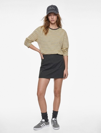 Çizgili Uzun Kollu Bisiklet Yaka Oversize Tişört