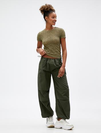 Balon Kol Tişört Fiyonk Detaylı Kare Yaka Kısa Kollu Slim Fit Bürümcük