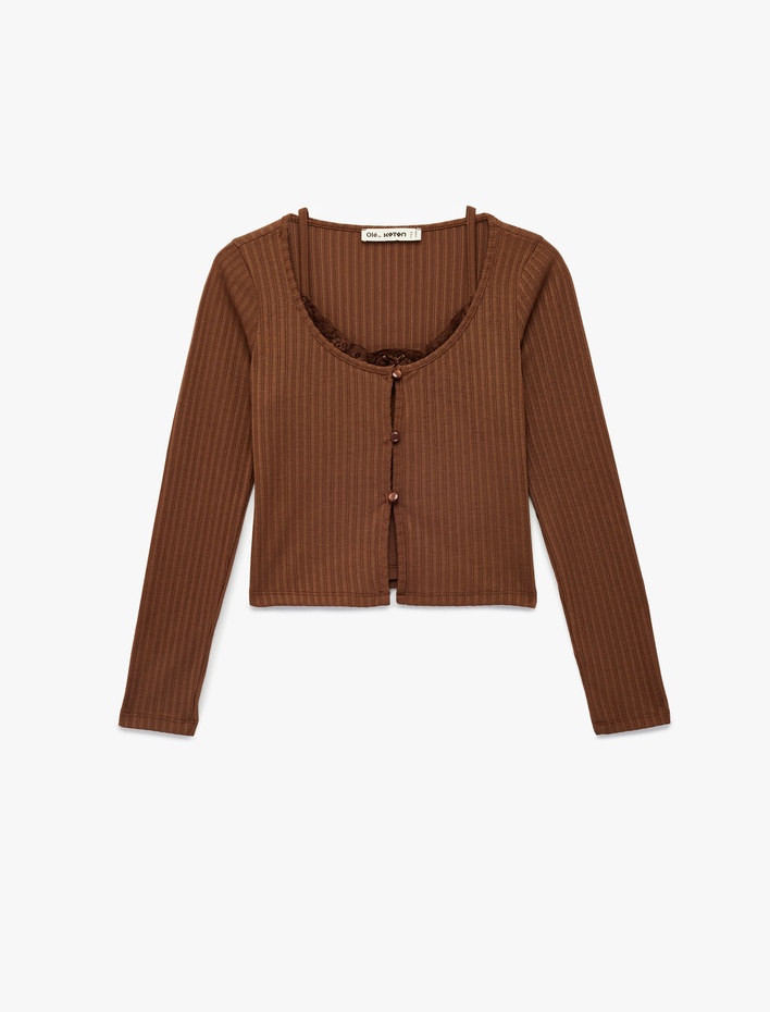 Slim Fit Uzun Kollu Düğmeli Atletli Bisiklet Yaka Kaşkorse Tişört Sepete Ekle