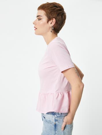 Kısa Kollu Fırfırlı Tişört Bisiklet Yaka Pamuklu