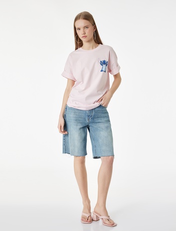Kısa Kollu Bisiklet Yaka Pamuklu Baskılı Oversize Tişört Sepete Ekle