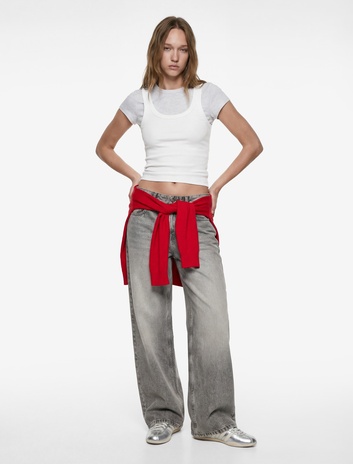 Pamuklu Yüksek Bel Kemerli Geniş Paça Pantolon - Wide Leg Jeans Sepete Ekle