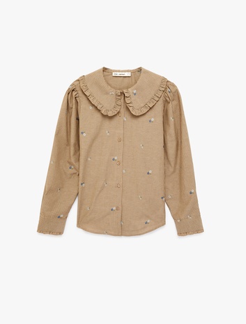 Düğmeli Uzun Kollu Çiçek Nakışlı Bebe Yaka Gömlek Sepete Ekle