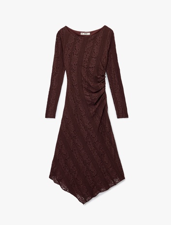 Uzun Kollu Bisiklet Yaka Drapeli Asimetrik Midi Dantel Elbise Sepete Ekle