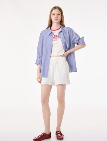 Nakış Detaylı Beli Lastikli Biyeli Mini Şort Sepete Ekle