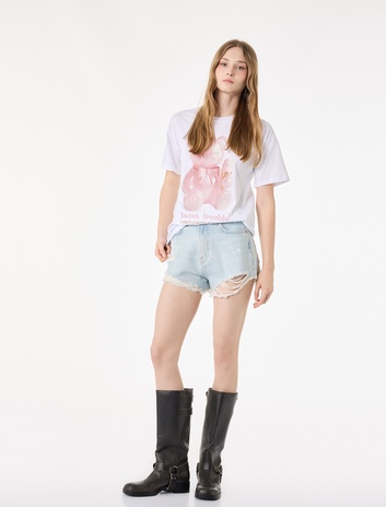 Kısa Kollu Bisiklet Yaka Ayıcık Baskılı Oversize Tişört Sepete Ekle