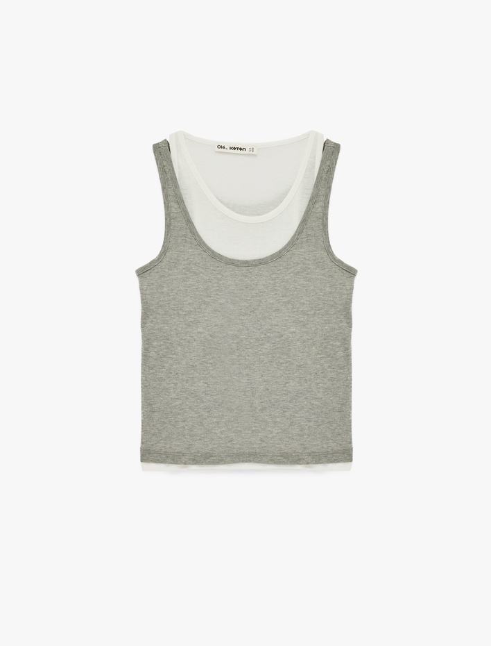 Viskon Karışımlı U Yaka İkili Kolsuz Bluz Sepete Ekle
