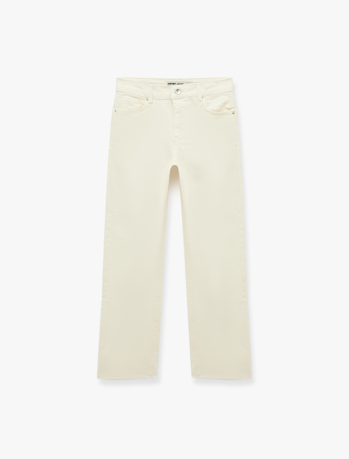 { "id": "8684969435138", "name": "Pamuklu Cepli Düğmeli İspanyol Paça Crop Jean Pantolon - Kick Flare Jeans", "taxonomy":["KOTON JEANS","OLE","WOMEN","WOVEN BOTTOMS","TROUSERS"], "currency": "TRY", "unit_price": 1399.99 , "unit_sale_price": 1399.99 , "url": "https://www.koton.com/pamuklu-cepli-dugmeli-ispanyol-paca-crop-jean-pantolon-kick-flare-jeans-ekru-4162531-1/", "stock": 85, "color": "KIRIK BEYAZ", "size": "38", "product_image_url": "https://ktnimg2.mncdn.com/products/2026/04/16/3229062/6315dda6-39c6-4f4c-9129-9530ae6c157c_size870x1142.jpg" }