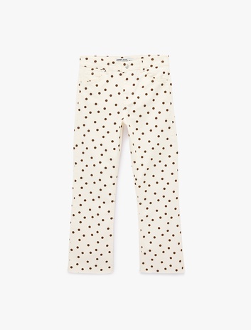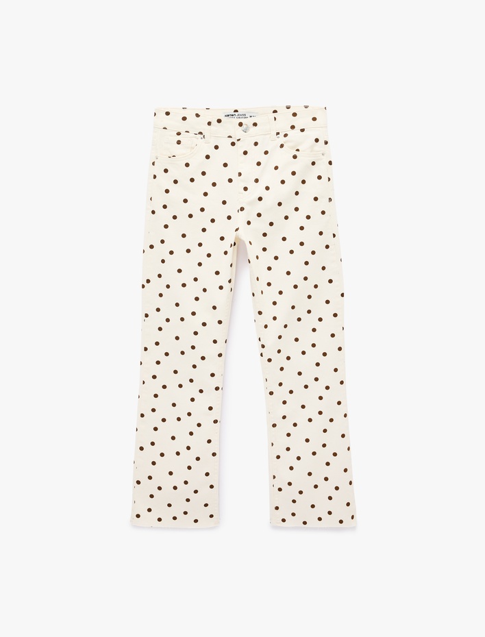 { "id": "8684969466330", "name": "Normal Bel Dar Kalıp Cepli Düğmeli Kısa İspanyol Paça Pantolon - Kick Flare Jeans", "taxonomy":["KOTON JEANS","OLE","WOMEN","WOVEN BOTTOMS","TROUSERS"], "currency": "TRY", "unit_price": 1399.99 , "unit_sale_price": 1399.99 , "url": "https://www.koton.com/normal-bel-dar-kalip-cepli-dugmeli-kisa-ispanyol-paca-pantolon-kick-flare-jeans-ekru-desenli-4163828/", "stock": 98, "color": "EKRU DESENLİ", "size": "36", "product_image_url": "https://ktnimg2.mncdn.com/products/2026/04/15/3227237/f666d09e-5811-4238-ae88-242115cc5ebe_size870x1142.jpg" }