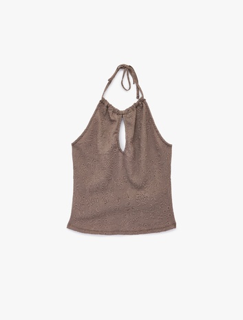 Boyundan Bağlamalı Bürümcük Kolsuz Halter Yaka Bluz Sepete Ekle