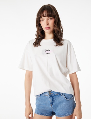 Rahat Kalıp Kısa Kollu Bisiklet Yaka Pamuklu Arkası Baskılı Tişört