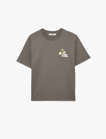 Rahat Kalıp Kısa Kollu Bisiklet Yaka Arkası Baskılı Pamuklu Tişört Sepete Ekle