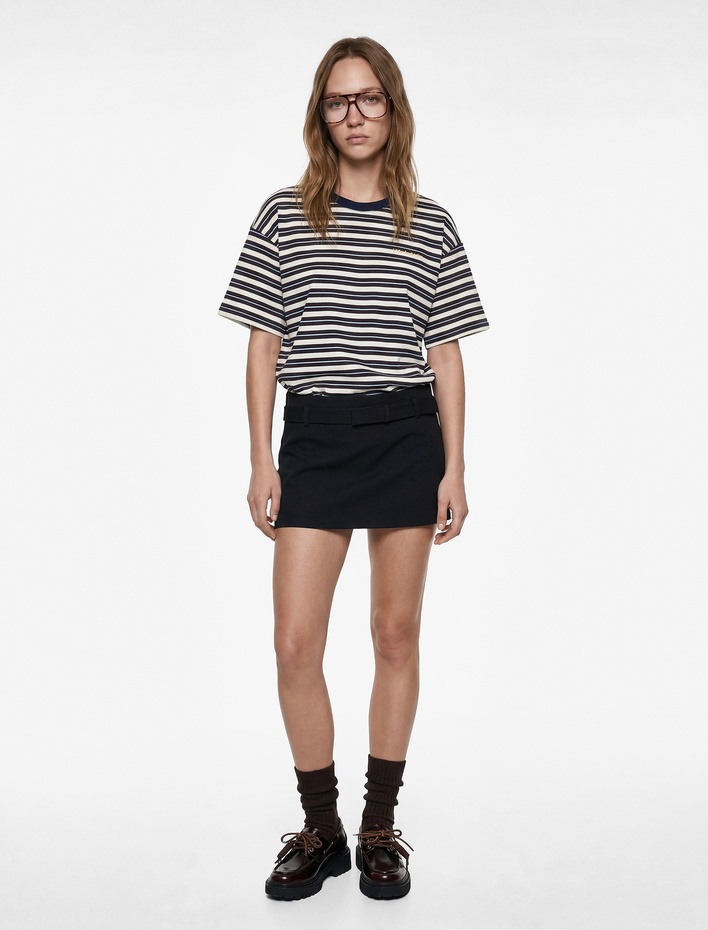Çizgili Rahat Kalıp Kısa Kollu Bisiklet Yaka Pamuklu Tişört Sepete Ekle
