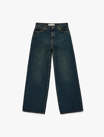 Düğme Detaylı Cepli Geniş Paça Denim Pantolon -  Wide Leg Jeans Sepete Ekle