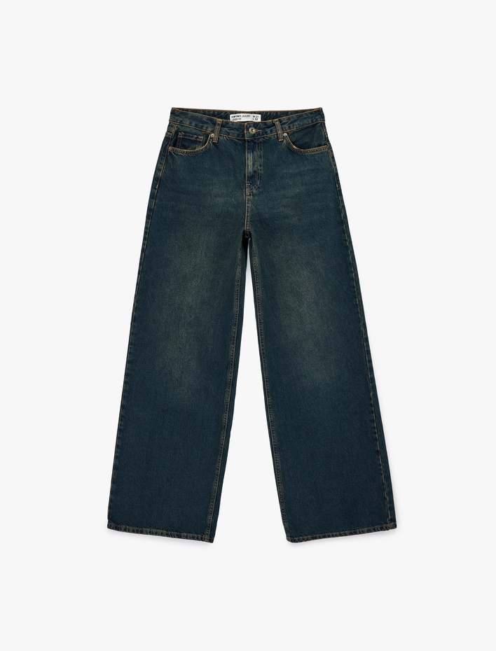 Pamuklu Cepli Düğmeli Normal Bel Baggy Jean Pantolon - Baggy Jeans Sepete Ekle