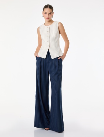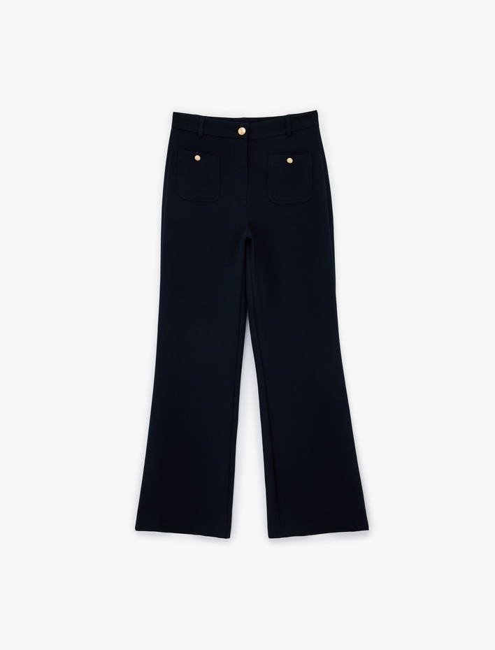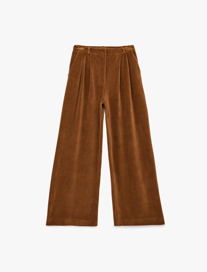 Geniş paça pantolon kalıbı, bel kısmı kısmen daha dar; bacağın üst kısmından bileğe kadar genişleyen bir tasarıma sahiptir. 1950’li yıllardan itibaren kadın modasının vazgeçilmezi olmayı başaran bu pantolonlar ile geniş paça pantolon kombinler yapabilir ve zamansız şıklığın tadını çıkarabilirsiniz.