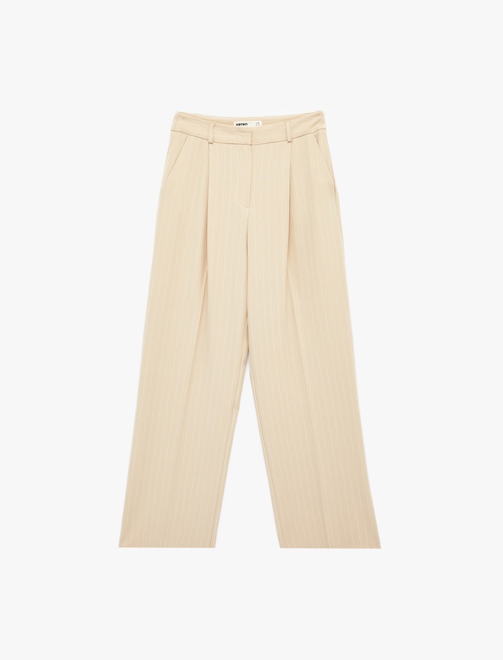 Yüksek Bel Regular Fit Geniş Paça Çizgili Kumaş Pantolon Sepete Ekle