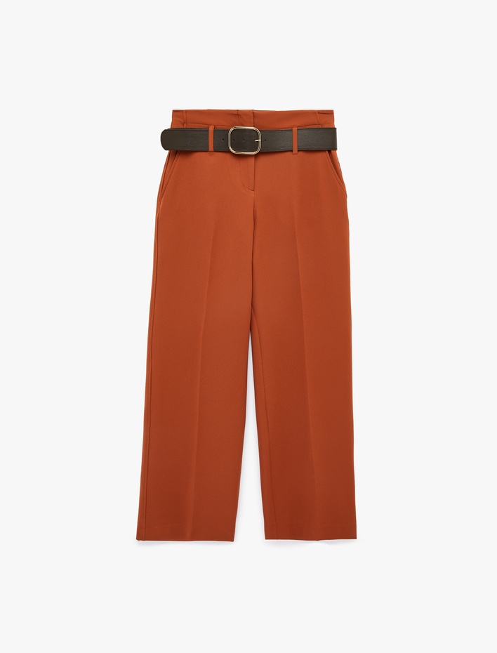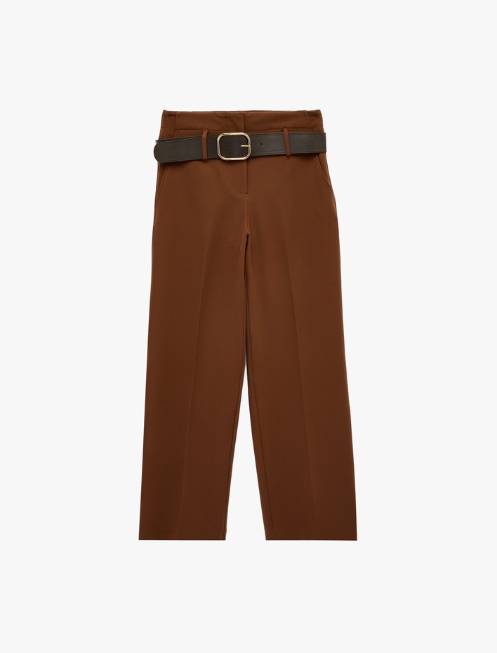 Cepli Kemer Detaylı Geniş Paça Uzun Kumaş Pantolon Sepete Ekle