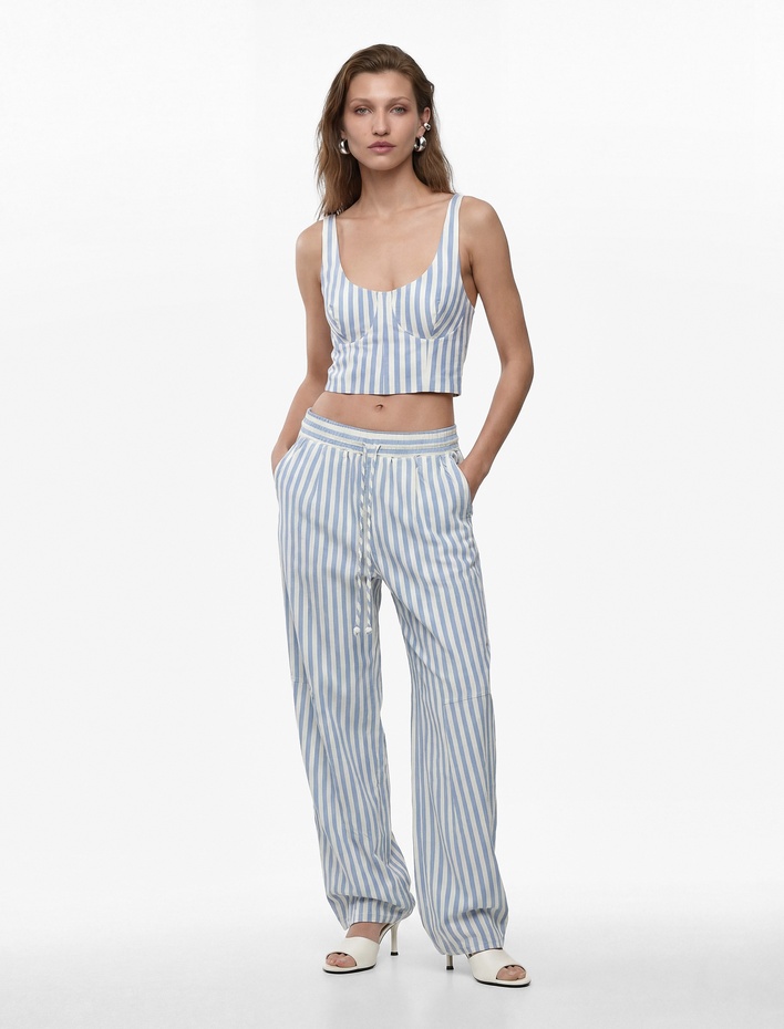 Geniş paça pantolon kalıbı, bel kısmı kısmen daha dar; bacağın üst kısmından bileğe kadar genişleyen bir tasarıma sahiptir. 1950’li yıllardan itibaren kadın modasının vazgeçilmezi olmayı başaran bu pantolonlar ile geniş paça pantolon kombinler yapabilir ve zamansız şıklığın tadını çıkarabilirsiniz.