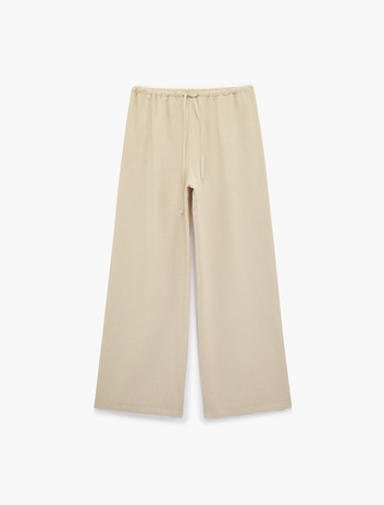 Viskon Karışımlı Beli Bağcıklı Geniş Paça Pantolon Sepete Ekle