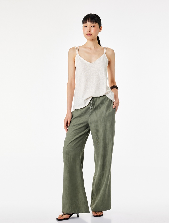 Bürümcük Kumaş Geniş Paça Beli Bağcıklı Pantolon Sepete Ekle