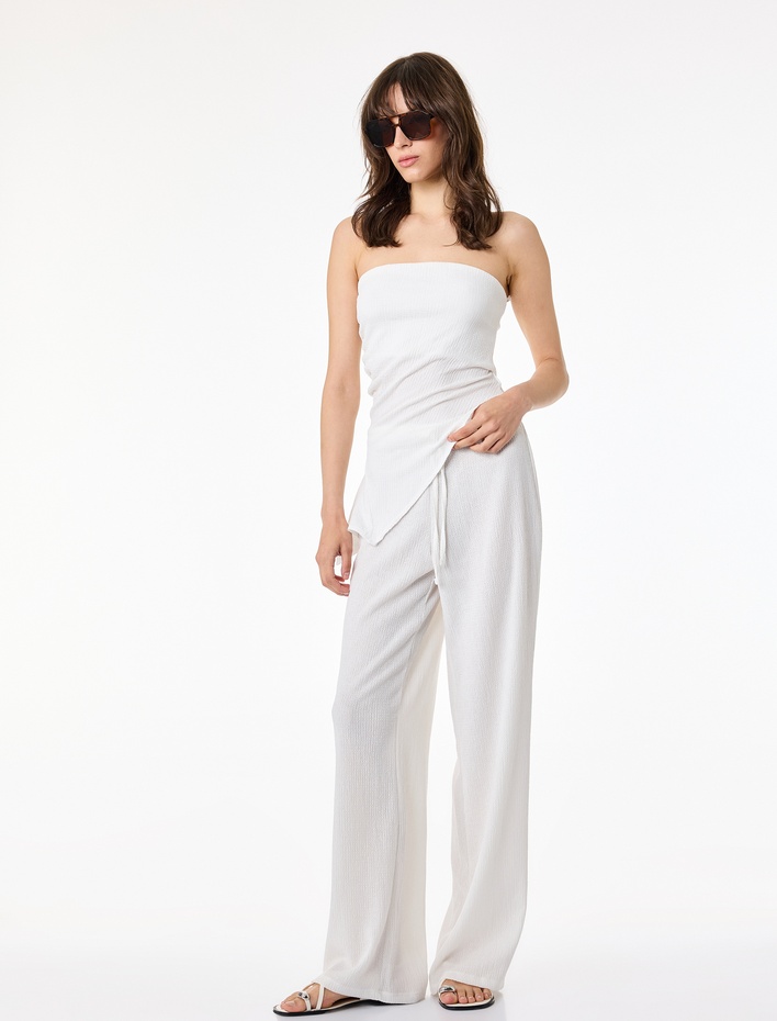 Bürümcük Kumaş Geniş Paça Beli Bağcıklı Pantolon Sepete Ekle