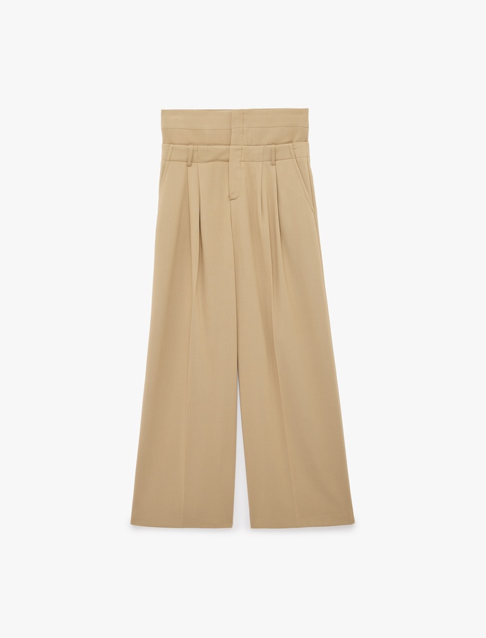 Çift Bel Detaylı Pileli Cepli Geniş Paça Pantolon