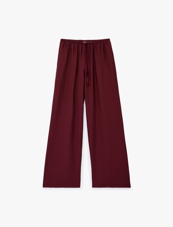 { "item_name": "Pile Detaylı Cepli Düz Geniş Paça Palazzo Pantolon", "item_id": "8684848884224", "price": 1499.99 , "item_brand": "Koton", "item_category":"CITY FASHION", "item_category2":"CITY FASHION", "item_category3":"WOMEN", "item_category4":"WOVEN BOTTOMS", "item_category5":"TROUSERS", "item_season":"2026 SPRING/SUMMER", "item_variant": "KIRMIZI|36", "item_list_name":"Geniş Paça Pantolon", "item_list_id":"1101", "index": 21 , "quantity":1, "base_code": "6SAK40265PW" }