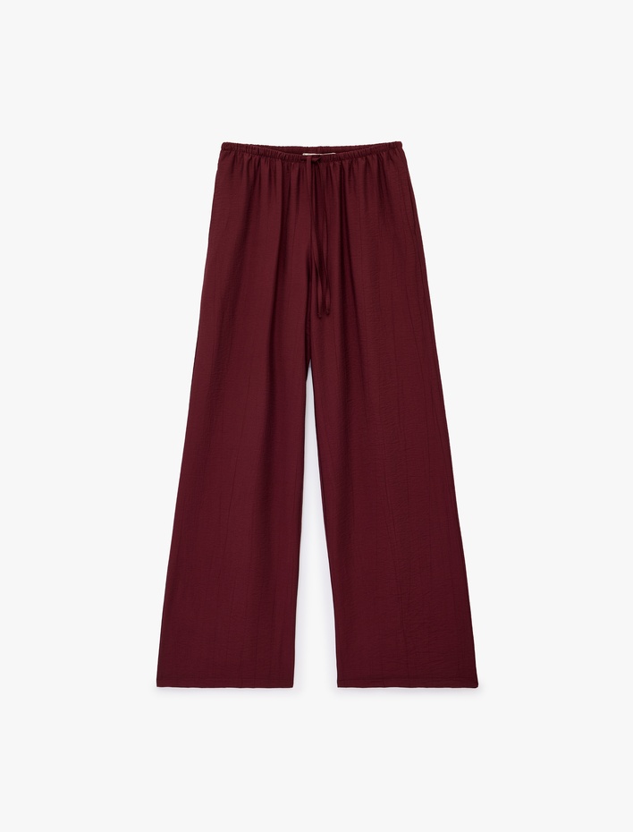 Yüksek Bel Rahat Kalıp Geniş Paça Beli Bağcıklı Pantolon