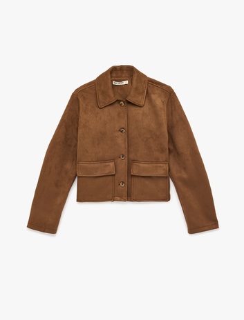 Klasik Yaka Çıtçıt Düğmeli Cep Detaylı Süet Görünümlü Gömlek Ceket