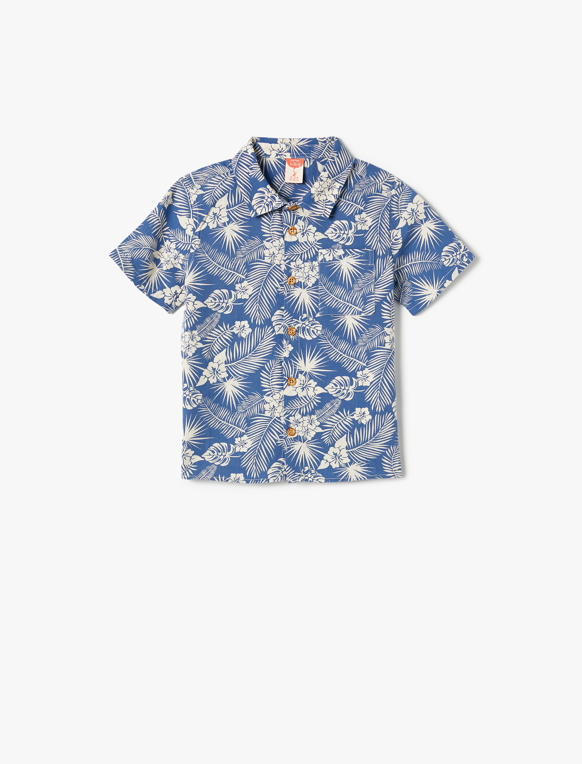 Erkek Bebek Gömlek Kısa Kollu Pamuklu Tropik Baskılı