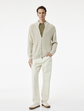 Şardonlu Pamuk Karışımlı Cep Detaylı Fermuarlı Dik Yaka Hırka Sepete Ekle
