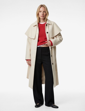 Uzun Pelerin Kaban Kaşe Kemerli Cepli Düğmeli