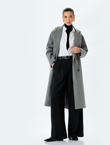 Cepli Uzun Kruvaze Kaşe Oversize Kaban