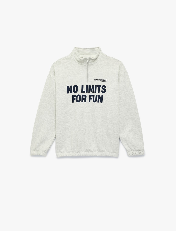 Pamuklu Üç İplik Uzun Kollu Dik Yaka Yarım Fermuarlı Baskılı Sweatshirt Sepete Ekle