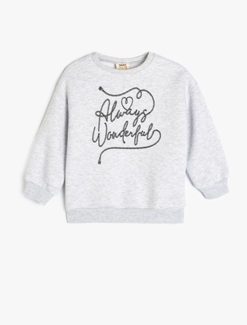 Slogan Baskılı Bisiklet Yaka Uzun Kollu Şardonlu Sweatshirt Sepete Ekle