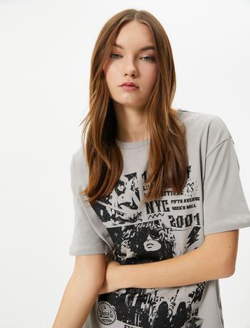 Baskılı Tişört Kısa Kollu Bisiklet Yaka Pamuklu
