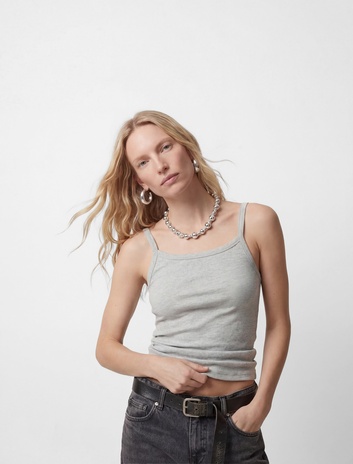 Slim Fit Ribanalı Kolsuz Kare Yaka Bluz Sepete Ekle