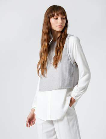 Uzun Kollu Gömlek Çift Parça Görünümlü Bisiklet Yaka Viskon