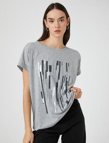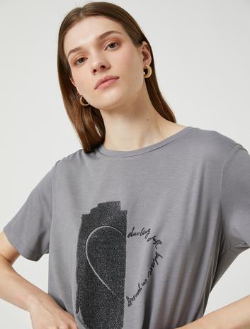 Baskılı Simli Tişört Kısa Kollu Relax Fit