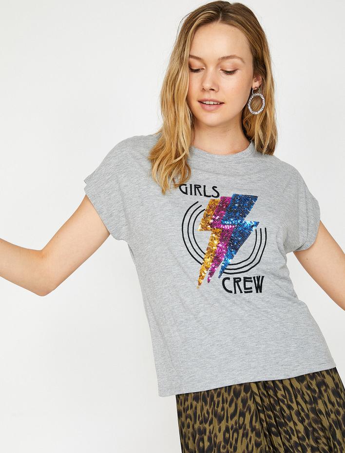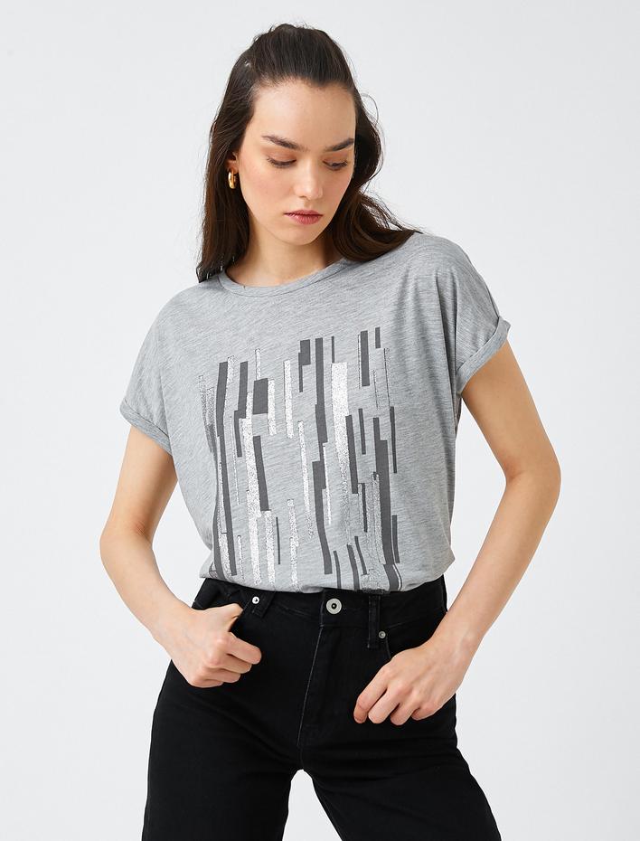 Bisiklet Yaka Kısa Kollu Baskılı Tişört Sepete Ekle