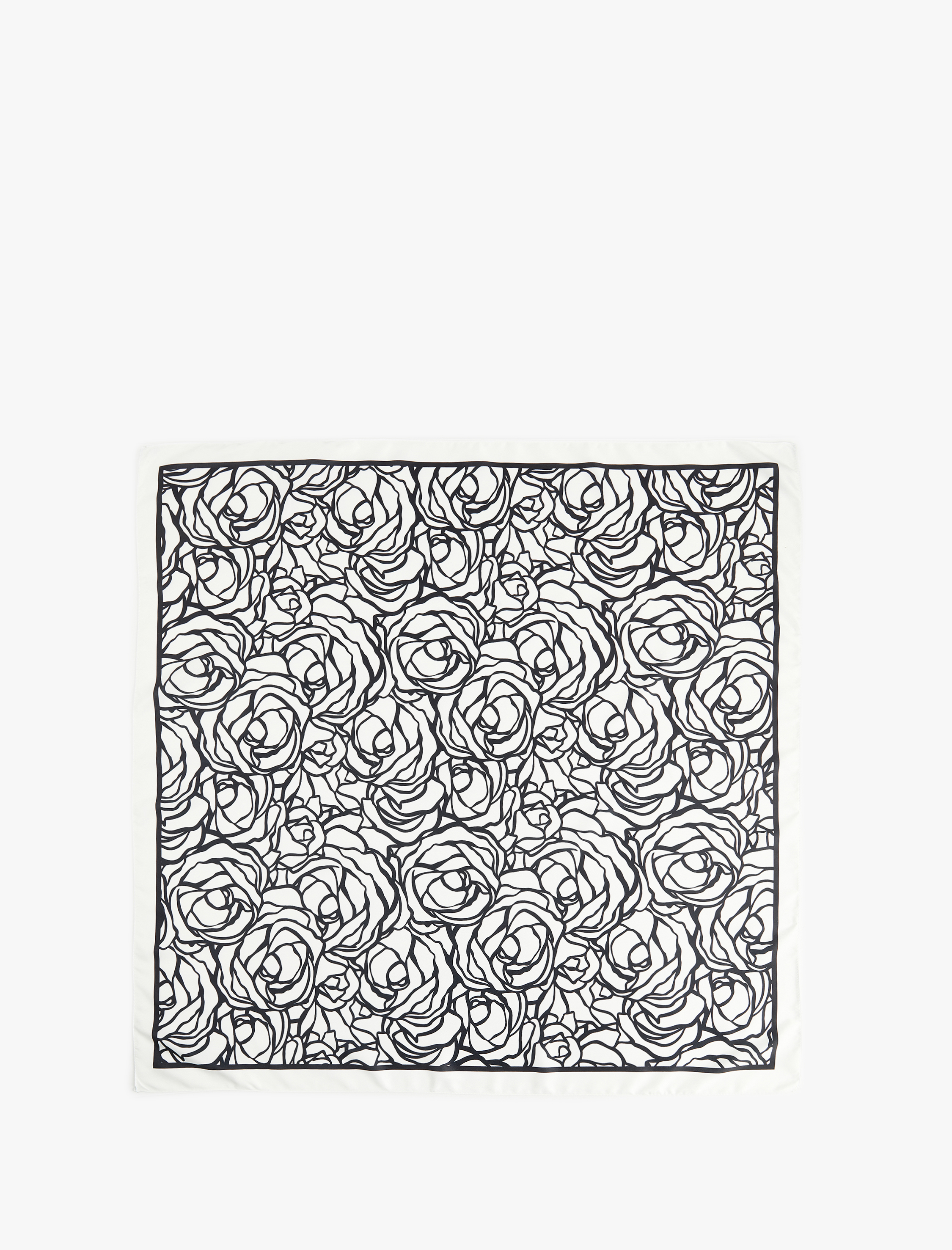 Kadın Gül Desenli Saten Kare Şal  Kadın Gül Desenli Saten Kare Şal  Kadın Gül Desenli Saten Kare Şal