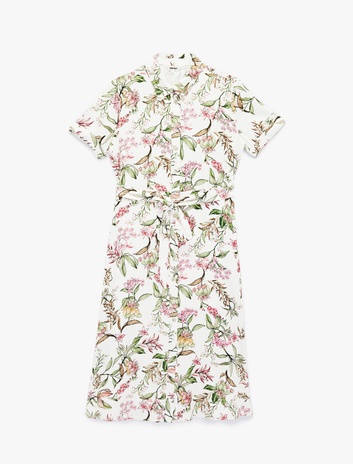 Kısa Kollu Gömlek Yaka Cepli Kemerli Viskon Çiçekli Gömlek Elbise Sepete Ekle