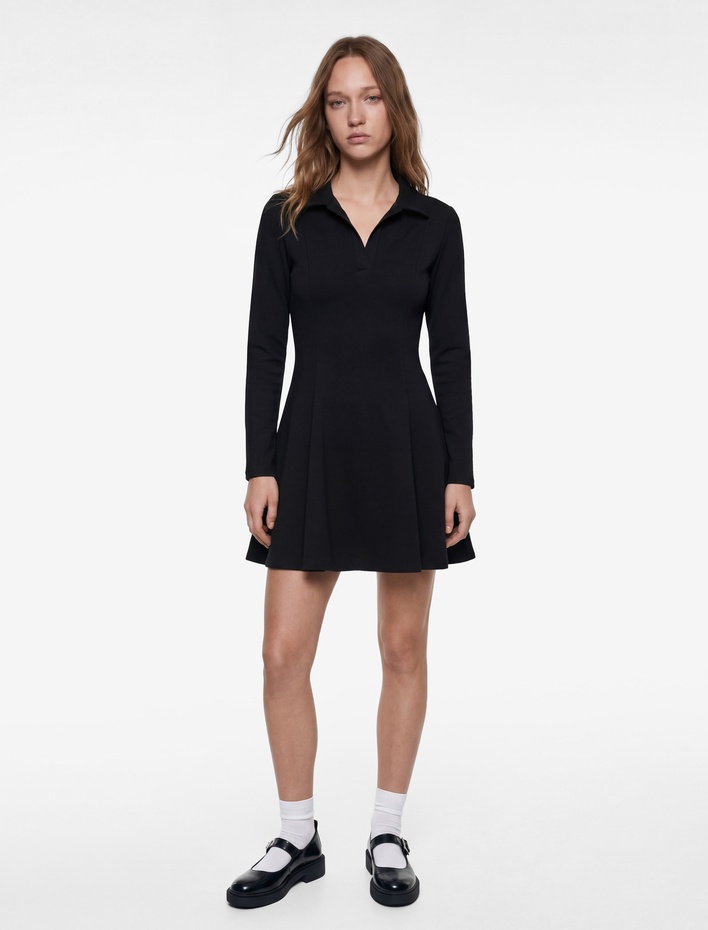 Slim Fit Uzun Kollu Mini Polo Yaka Elbise