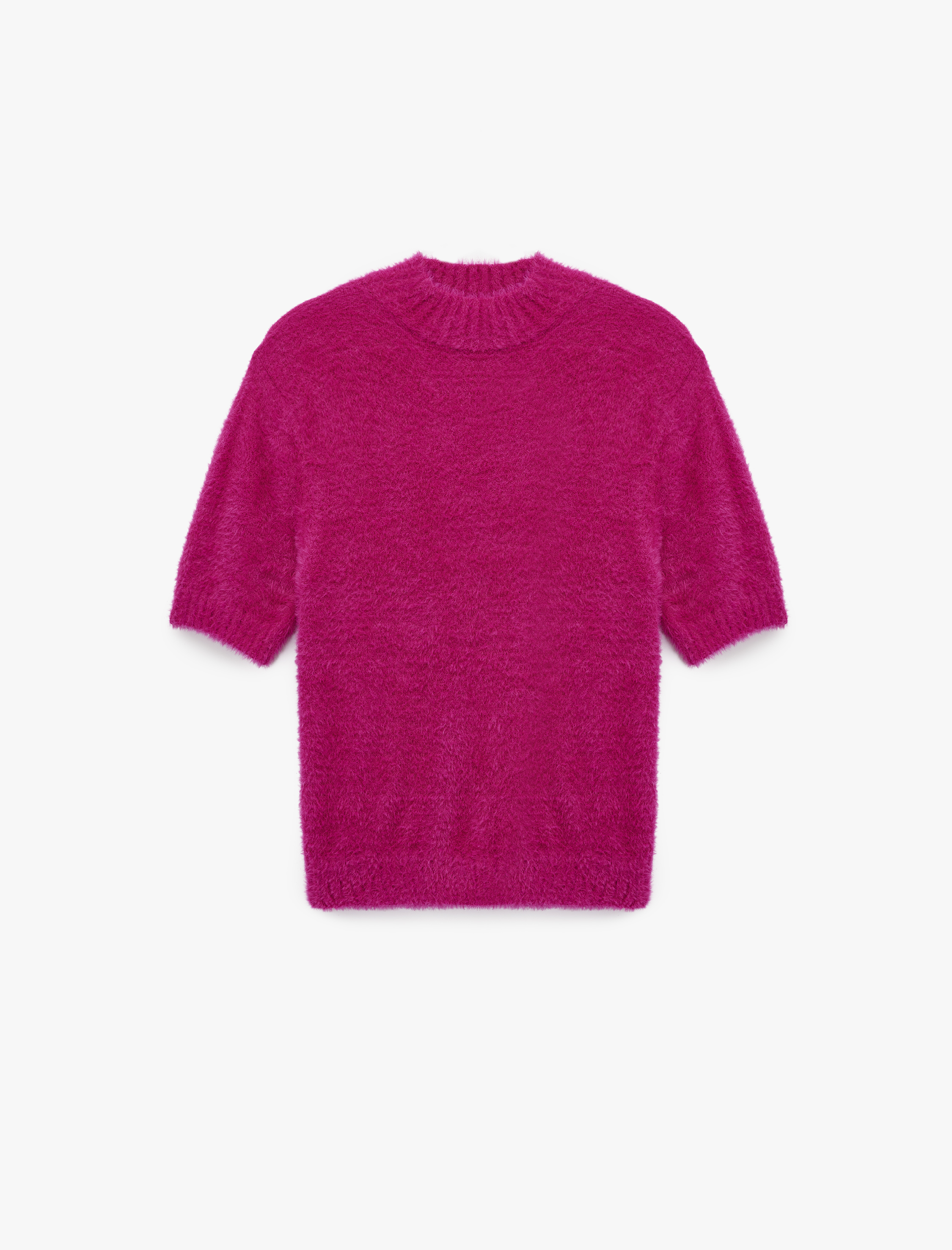 Hafif Dik Yaka Kısa Kollu Triko Peluş Kazak