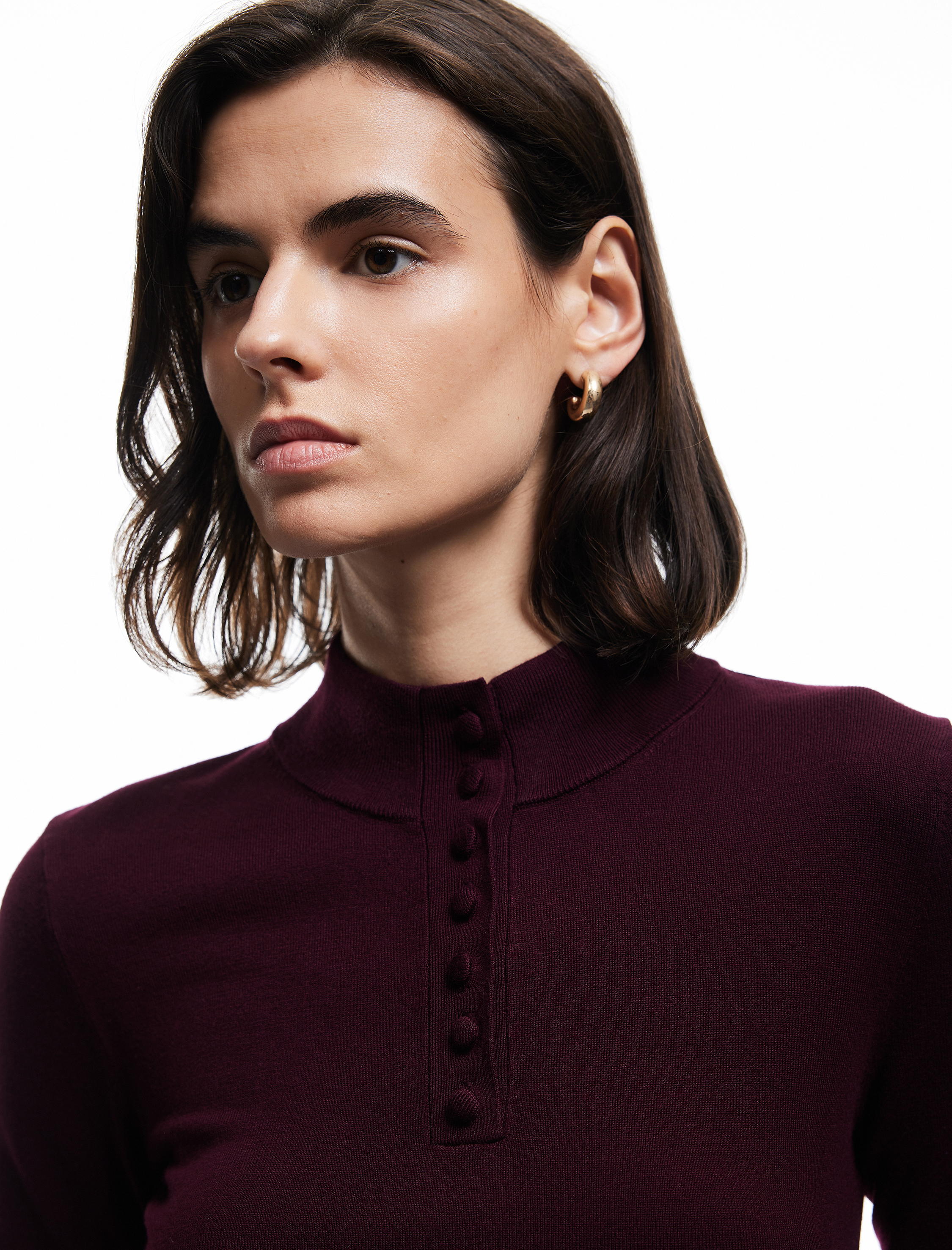 Hafif Dik Yaka Yarım Düğme Detaylı Uzun Kollu Triko Basic Kazak