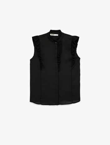 Hakim Yaka Fırfır Detaylı Düğmeli Kolsuz Gömlek Sepete Ekle