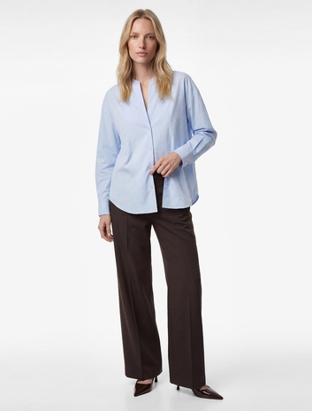 Uzun Kollu Poplin Gömlek Tüvit Detaylı Hakim Yaka Düğmeli Pamuklu