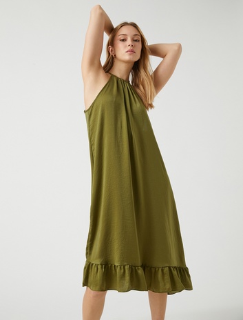Fırfırlı Midi Boy Elbise Halter Yaka Sepete Ekle
