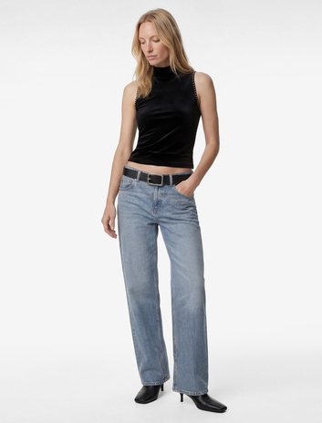 Slim Fit Kolsuz İnci Detaylı Dik Halter Yaka Kadife Bluz Sepete Ekle